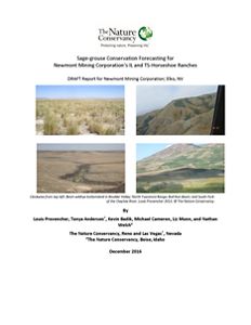 Provencher L, Anderson T, Badik K, Cameron M, Munn L, Welch N. 2016. Sage-grouse Conservation Forecasting for Newmont Mining Corporation's IL and TS-Horseshoe Ranches. Report to Newmont Mining Corporation. The Nature Conservancy.