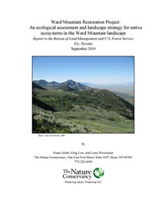 This report shares an ecological assessment of ~120,000 acres at and around Ward Mountain southwest of Ely, Nevada. Its purpose was to inform and guide the formulation of future site-specific, cost-effective vegetation management projects to protect, enhance and restore the ecological integrity of the area. The assessment was developed using satellite imagery, remote sensing, predictive ecological models, and cost-benefit assessments.