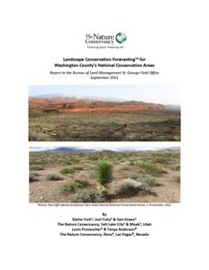 York E, Tuhy J, Green G, Provencher L, Anderson T. 2011. Landscape Conservation Forecasting for Washington County's National Conservation Areas. Report to the Bureau of Land Management St. George Field Office. The Nature Conservancy.