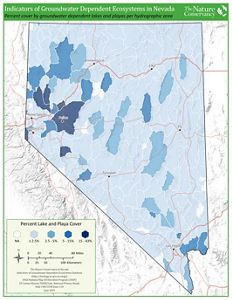 This map shows the amount of groundwater dependent lakes and playas in each hydrographic area in Nevada. These data are from the Nevada indicators of groundwater dependent ecosystems database.