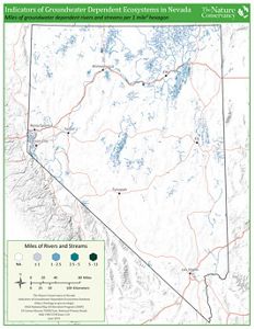 This map shows the amount of groundwater dependent rivers and streams in each 1 mile-squared hexagon across Nevada. These data are from the Nevada indicators of groundwater dependent ecosystems database.