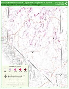 This map shows the amount of groundwater dependent springs in each 1 mile-squared hexagon across Nevada. These data are from the Nevada indicators of groundwater dependent ecosystems database.