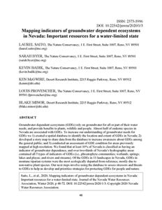 This is the published article about mapping indicators of groundwater dependent ecosystems (GDEs) in Nevada that resulted in the Nevada iGDE database and story map.