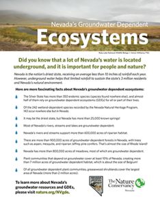 Find out facts about groundwater dependent ecosystems (GDEs) in Nevada with this fact sheet that describes Nevada's GDEs and the story map.